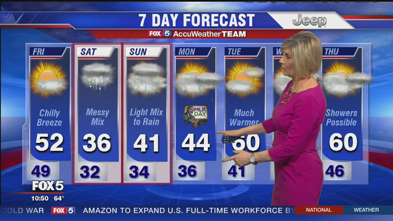 FOX 5's Sue Palka has the latest on your weather for Friday and MLK holiday weekend.