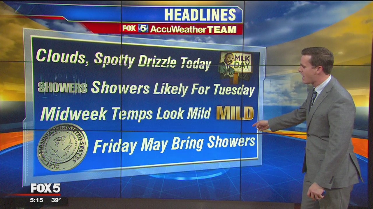 Mike Thomas has the FOX 5 Weather forecast for Monday, January 16.