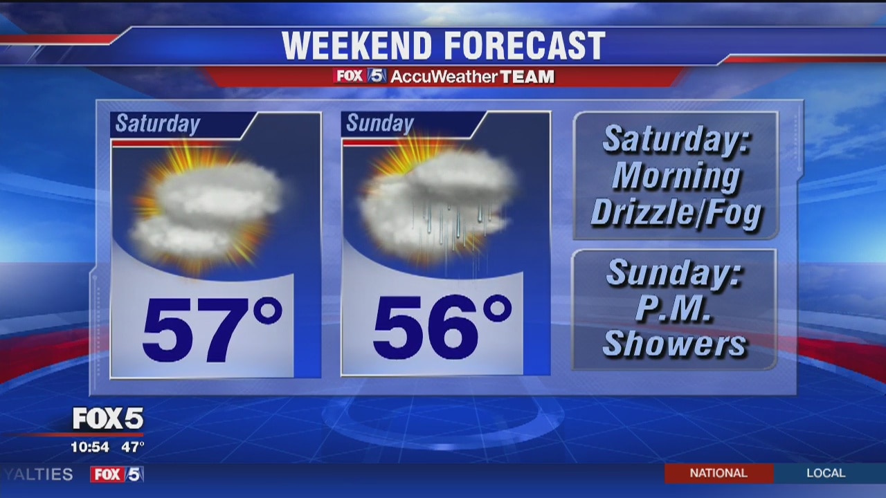 FOX 5's Gary McGrady has the latest on the weekend weather forecast.