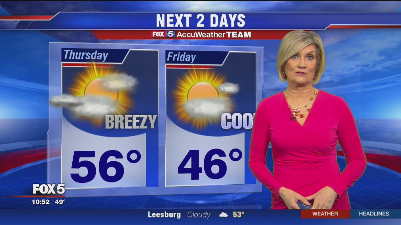 FOX 5's Sue Palka has the latest on the possible rain in the forecast for Thursday.