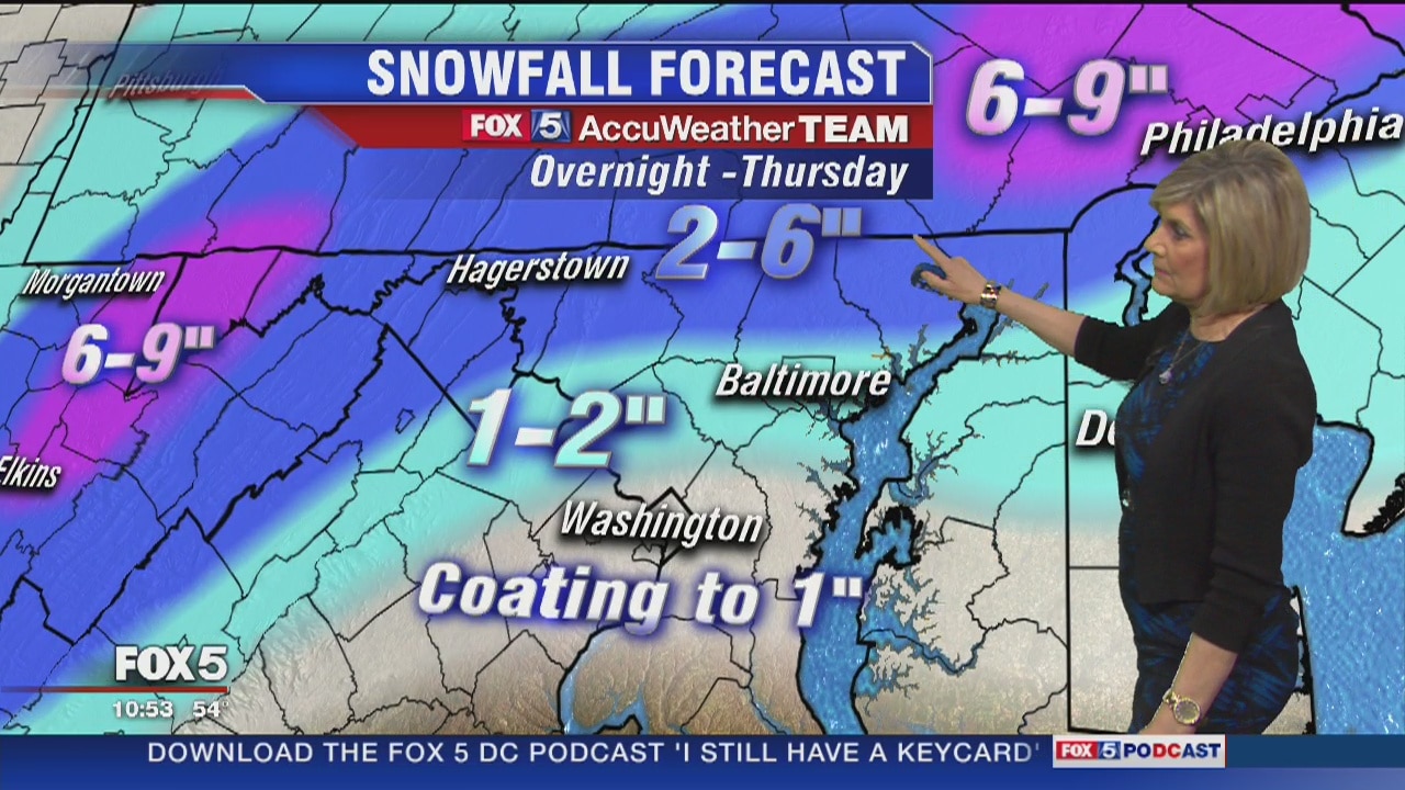 FOX 5's Sue Palka has the latest on the snow for Thursday.