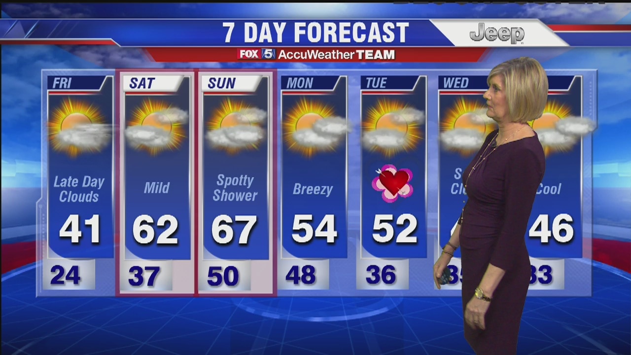 FOX 5's Sue Palka has the latest on Friday's forecast and a look ahead to the weekend.