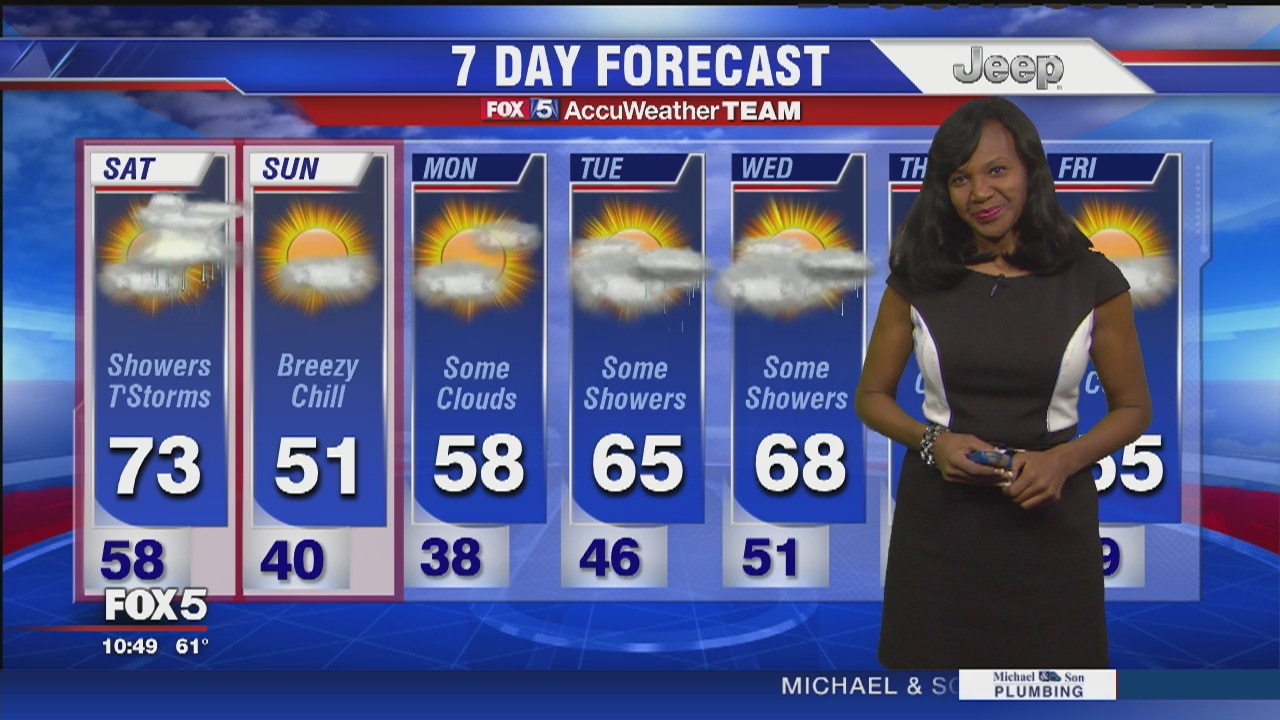 FOX 5's Gwen Tolbart has the latest on the roller coaster weekend forecast.