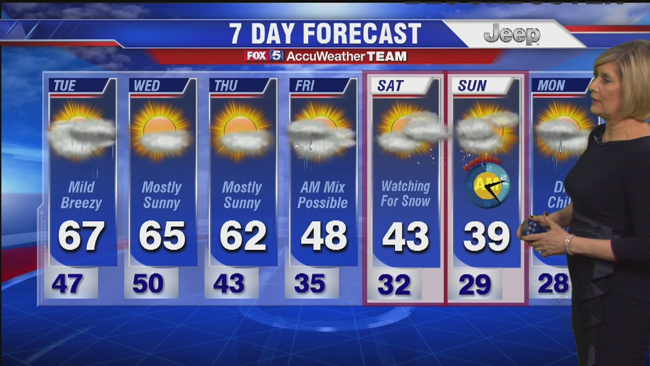 FOX 5's Sue Palka has the latest on the 7-day weather forecast.