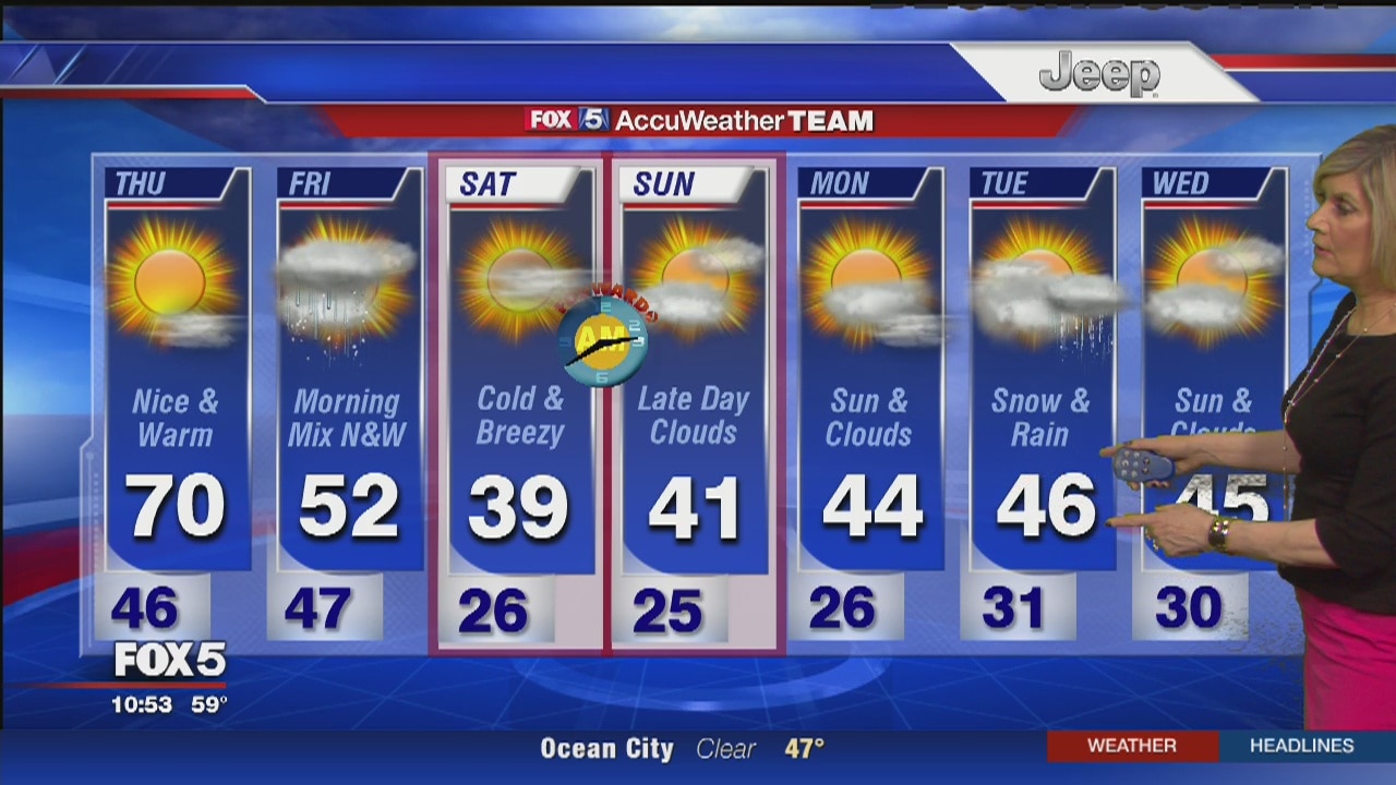 FOX 5's Sue Palka has more on the warm Thursday weather forecast.