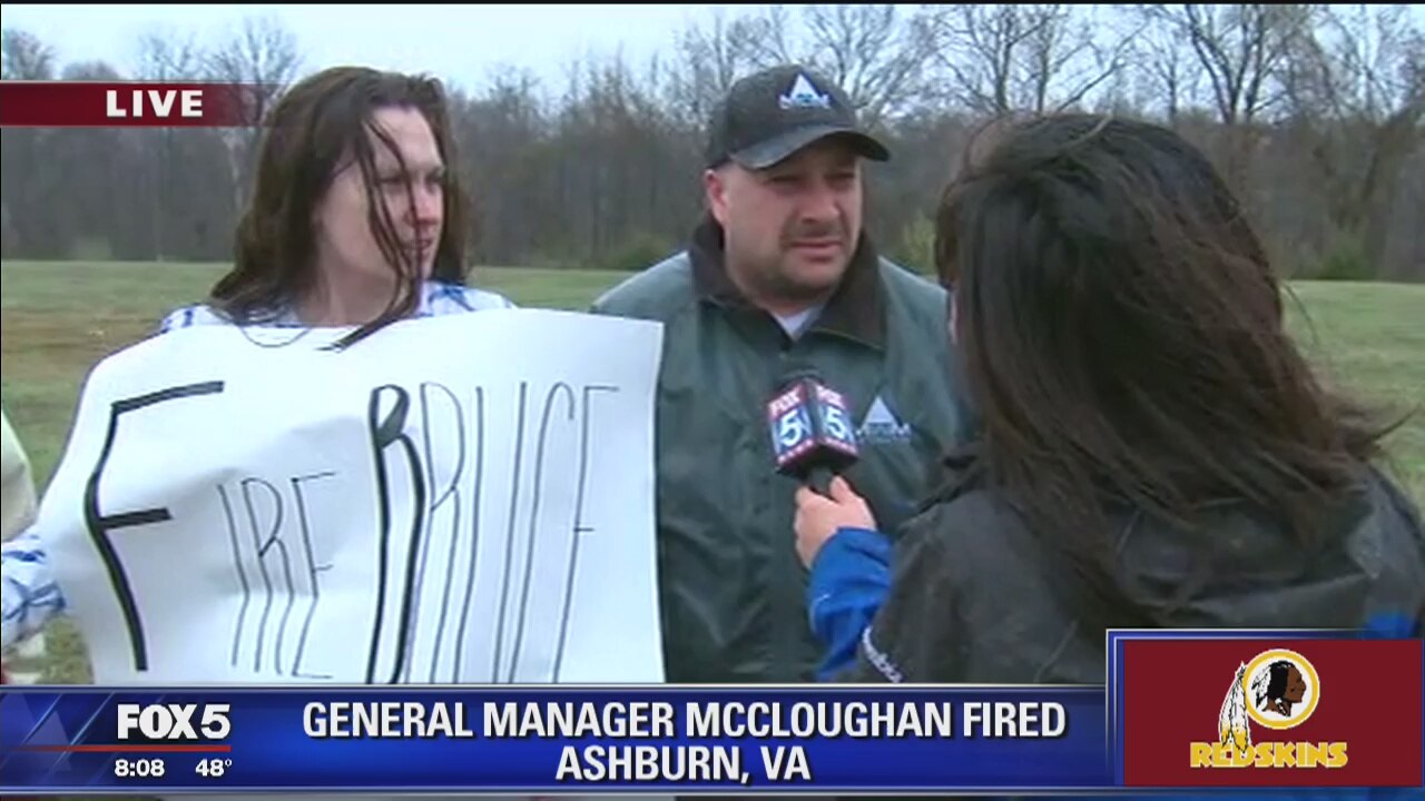 Upset Redskins fans gathered outside of the team's Virginia training facilities Friday to protest the decision to fire General Manager Scot McCloughan.