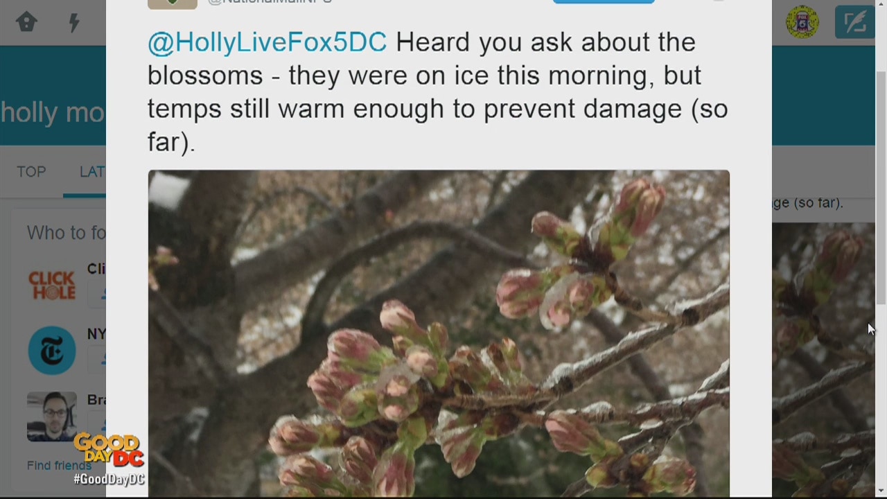 The cherry blossoms held their own Tuesday morning even as the D.C. region?s first major snow of the year swept over the Tidal Basin.
