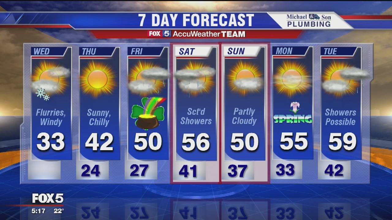 Mike Thomas has the FOX 5 Weather forecast for Wednesday, March 15.