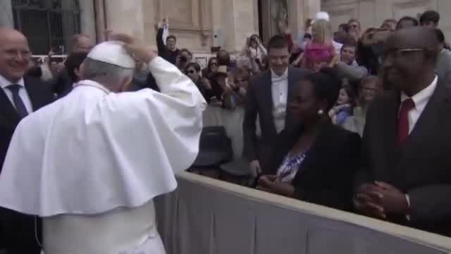 Pope Francis' skullcap snatched by playful girl