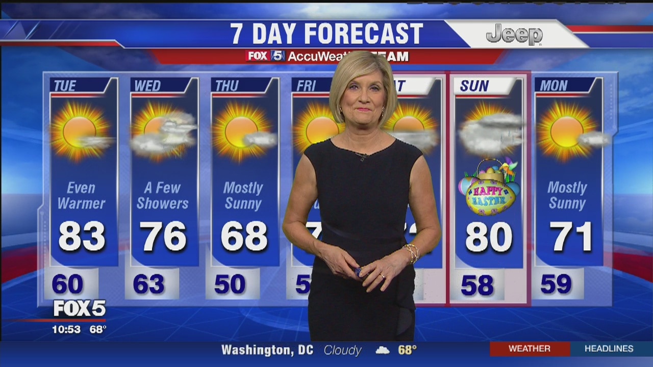 Temperatures are expected to rise into the 80s on Tuesday. FOX 5's Sue Palka has more in her forecast.