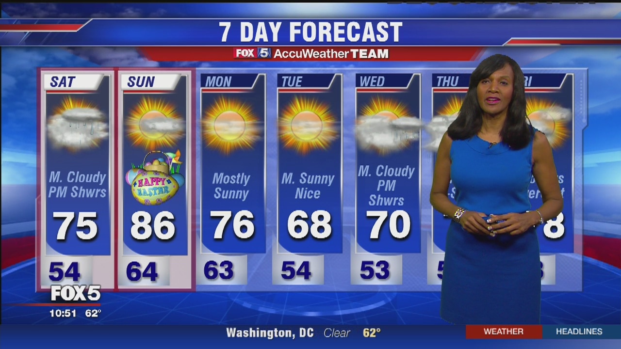 FOX 5's Gwen Tolbart has the latest on the Easter weekend forecast.