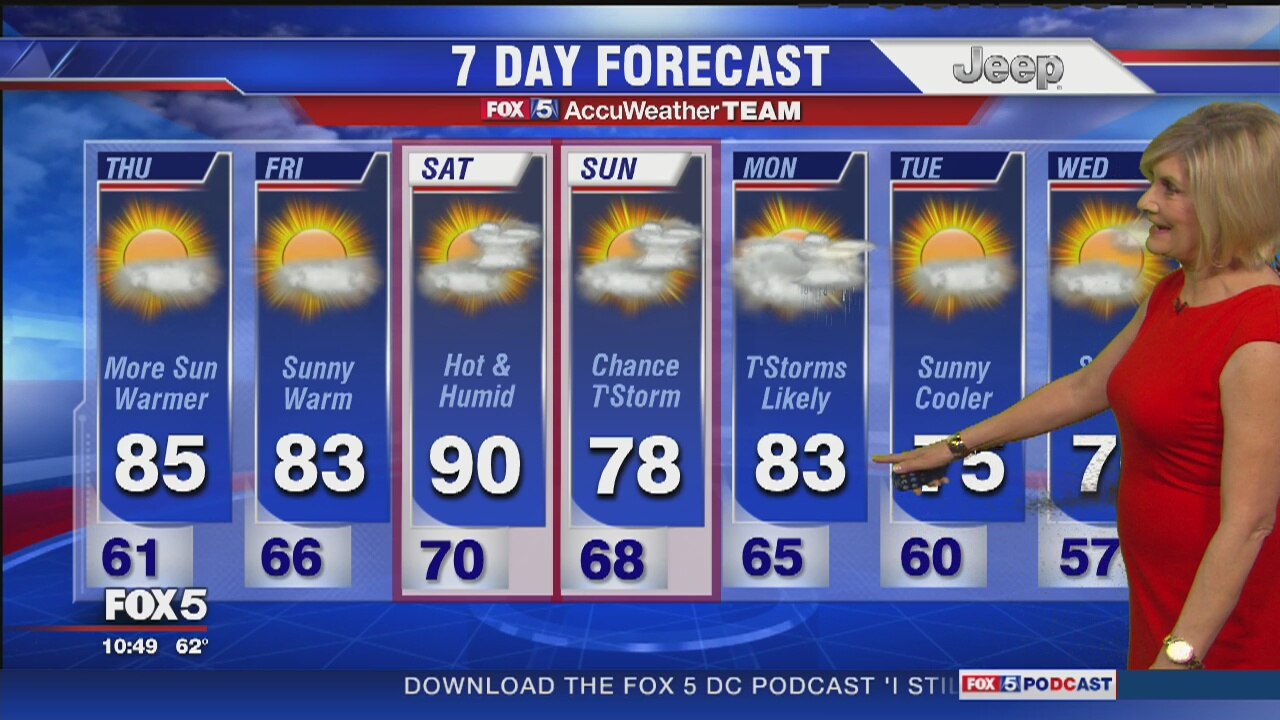 FOX 5's Sue Palka has the latest on the hot temperatures heading our way for Thursday.