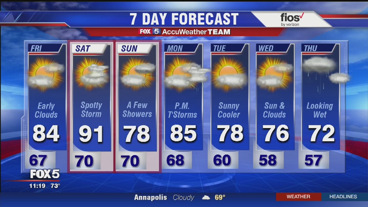 FOX 5's Gary McGrady has the latest on the Friday weather forecast.