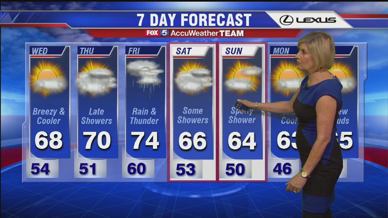 FOX 5's Sue Palka has more on the cooler temperatures headed our way.