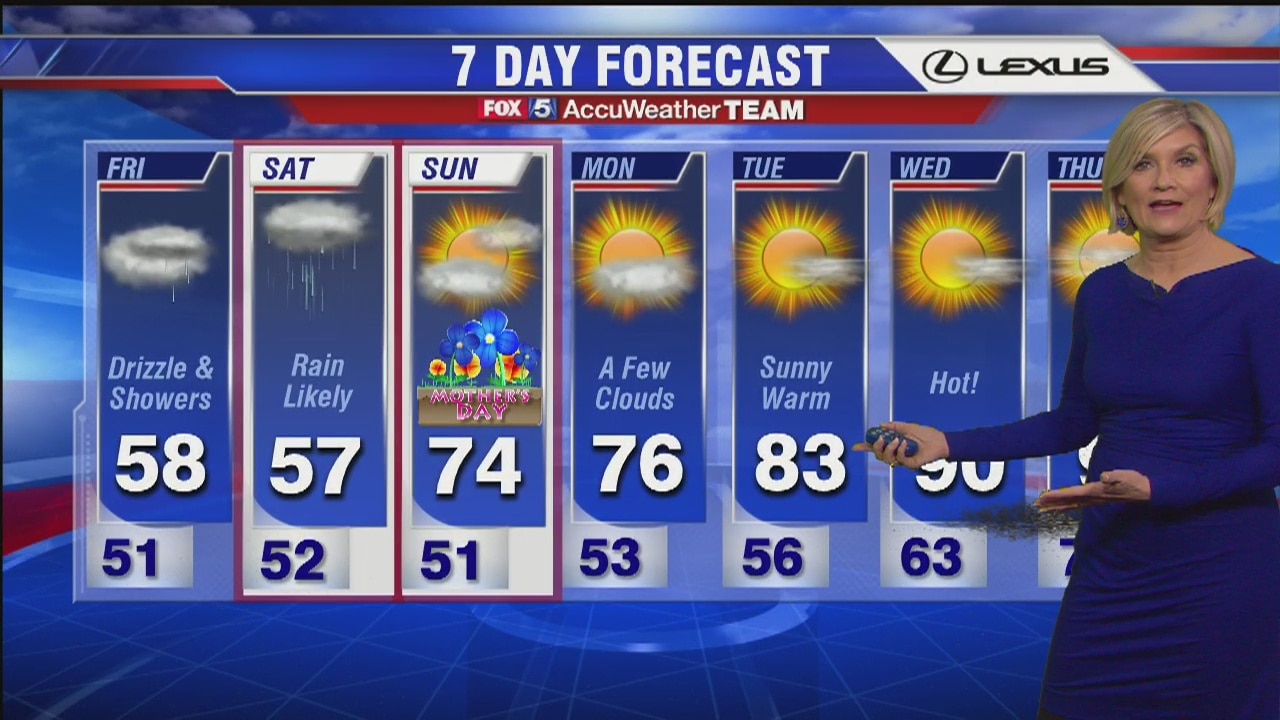 FOX 5's Sue Palka has the latest on the rainy weather forecast for the next couple of days.