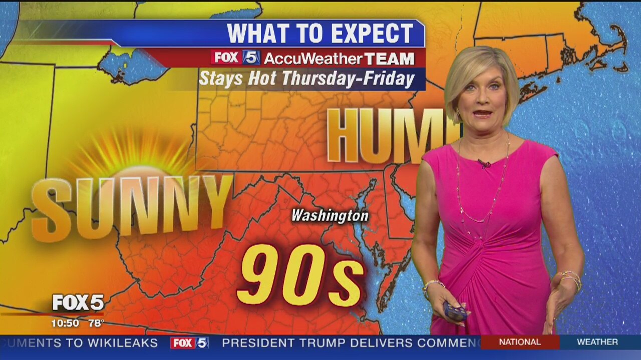 FOX 5's Sue Palka has the latest on Thursday's weather forecast.