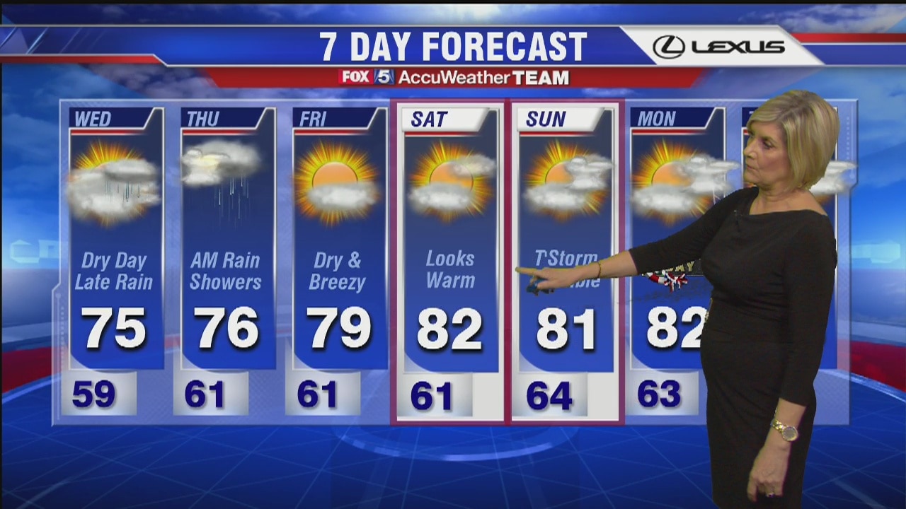 FOX 5's Sue Palka has more on the 7-day weather forecast.