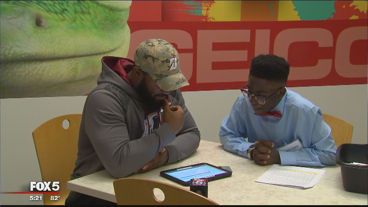 Redskins rookies got some very important financial advice on how to spend their new paychecks-- from middle schoolers. Brody Logan reports.