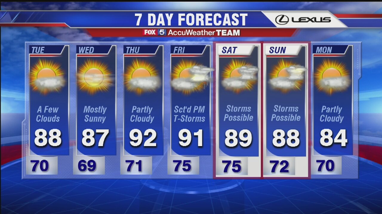 FOX 5's Caitlin Roth has your 7-day weather forecast.