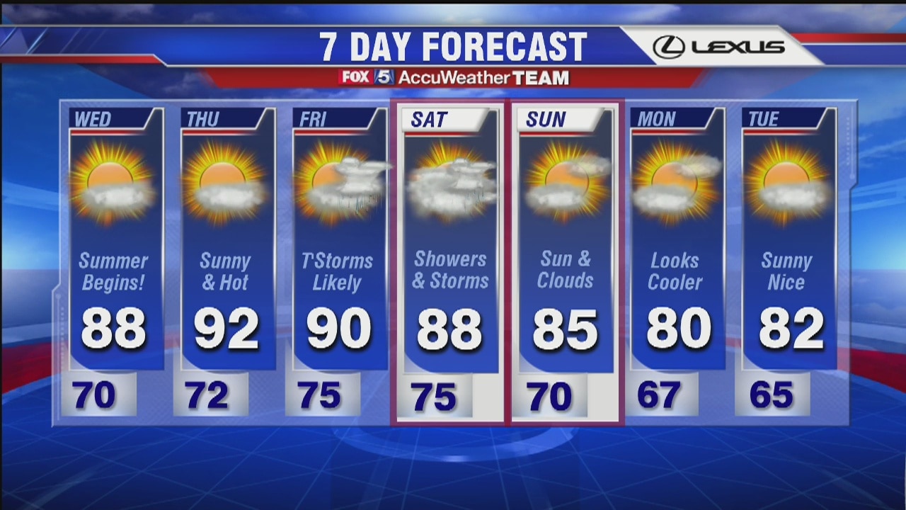 FOX 5's Caitlin Roth has the latest on the 7-day weather forecast.