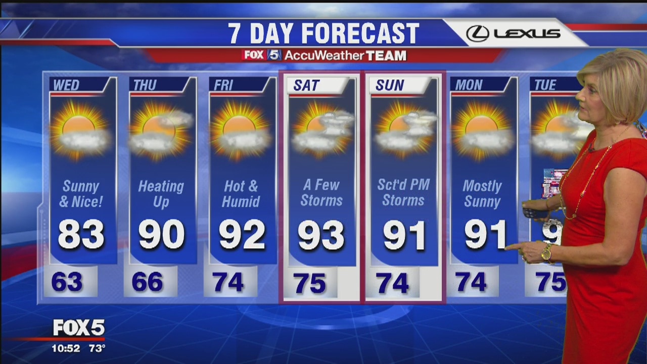 FOX 5's Sue Palka has your Wednesday weather forecast.