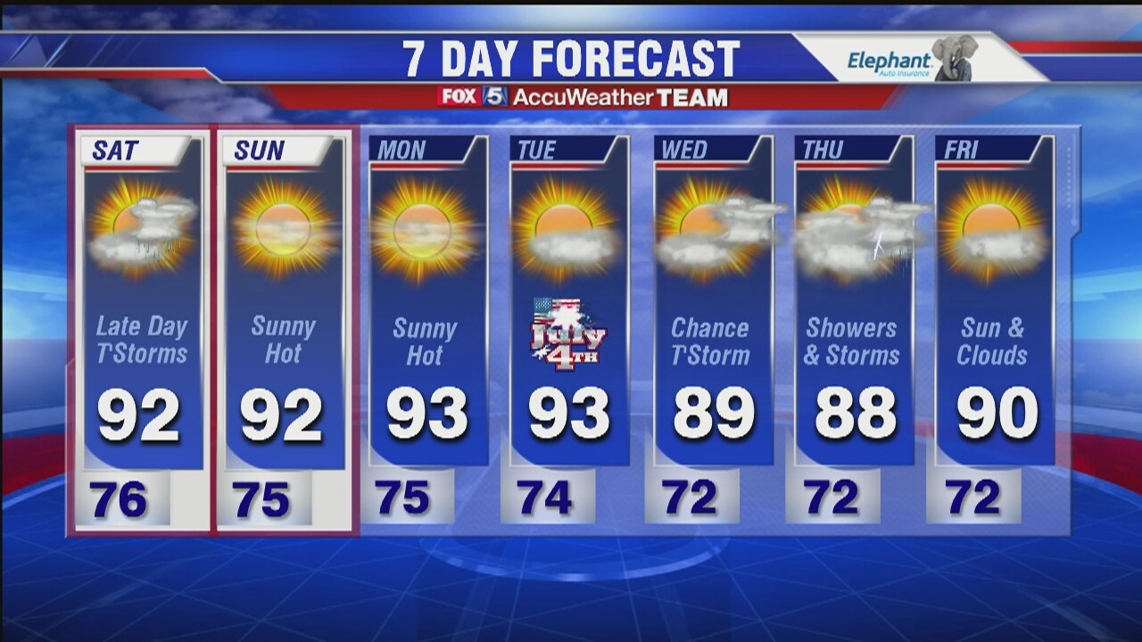 FOX 5's Caitlin Roth has your weather forecast for the holiday weekend.