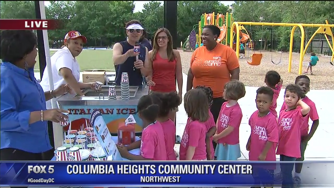 FOX 5?s Tucker Barnes and Erin Como visited campers at the Columbia Heights Community Center to see what they?re up to this summer and to bring them tasty treats from Rita?s Italian Ice!