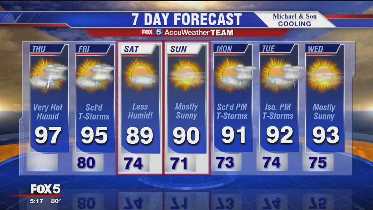 Mike Thomas has the FOX 5 Weather forecast for Thursday, July 13.