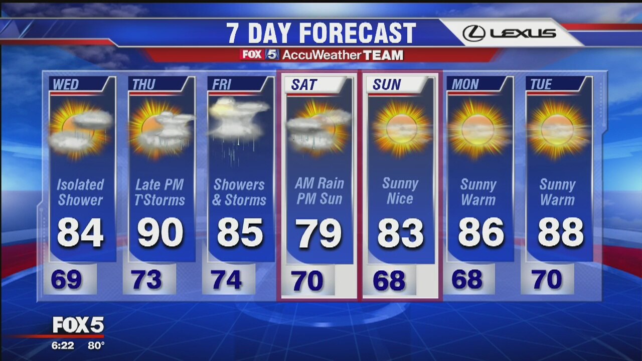 FOX 5's Caitlin Roth has more on the 7-day weather forecast.