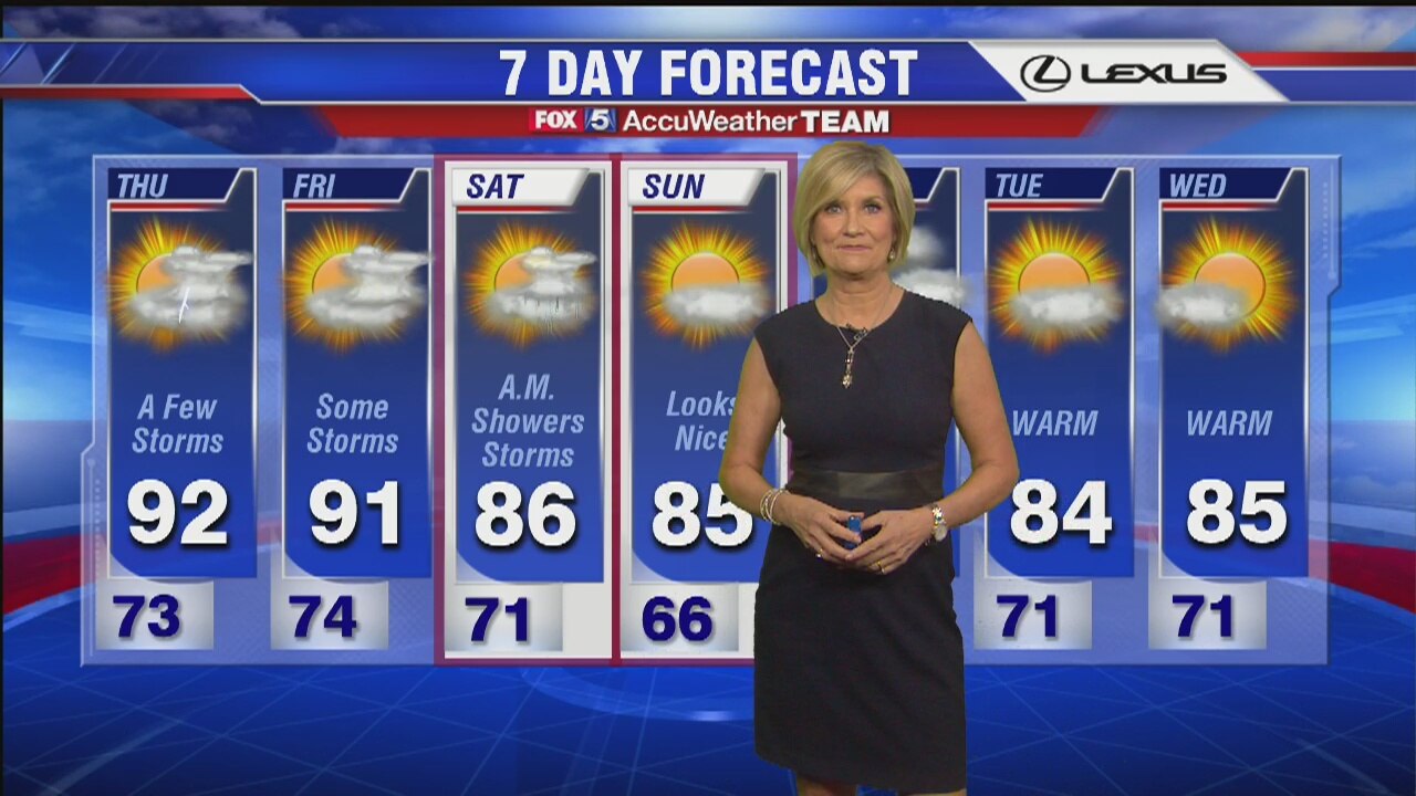 FOX 5's Sue Palka has your 7-day weather forecast.