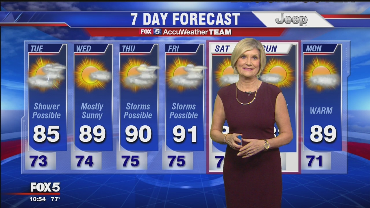FOX 5's Sue Palka has the latest on Tuesday's weather forecast.