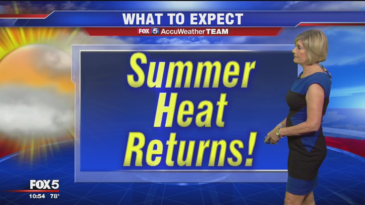 FOX 5's Sue Palka has the latest on the Wednesday weather forecast.