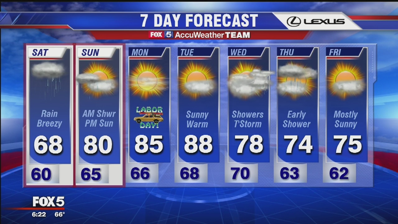 FOX 5's Gwen Tolbart has more on the Labor Day weekend forecast.