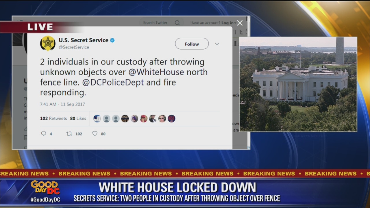 Two people are in custody after officials said objects were thrown over the fence at the White House.