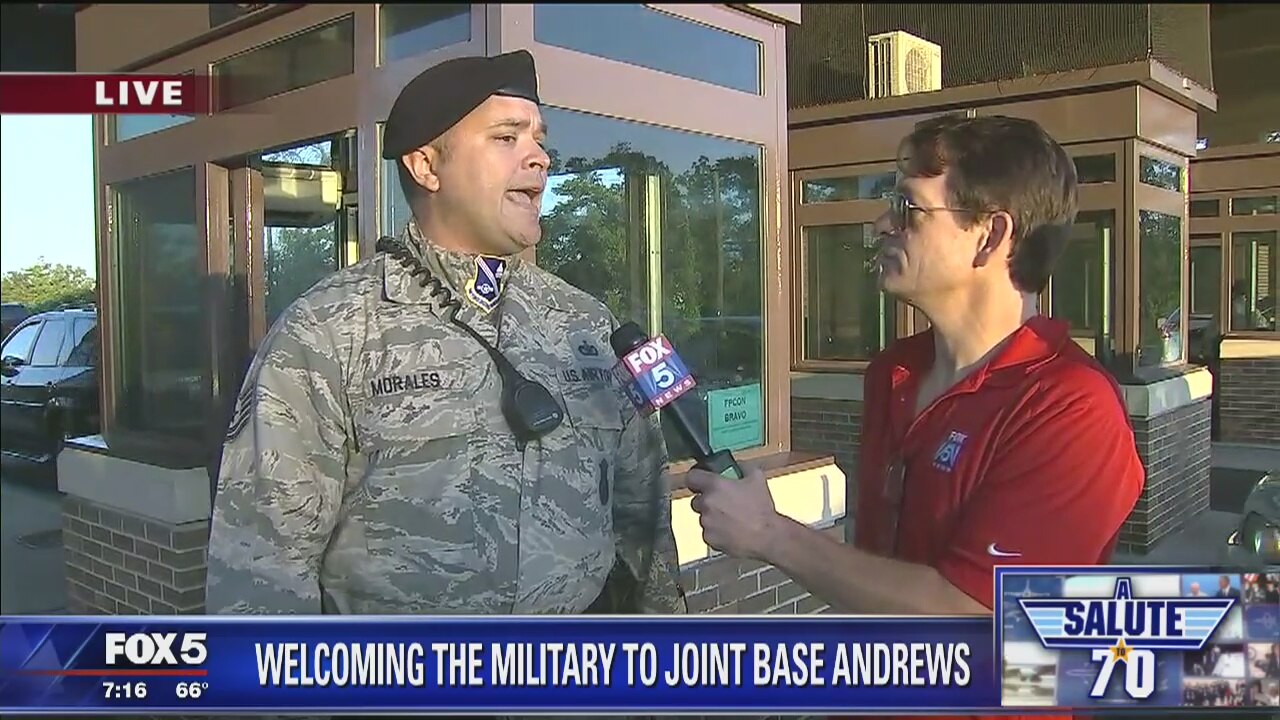 Technical Sergeant Luis Morales and Senior Airman Michael Norris chat with FOX 5's Tucker Barnes ahead of the 2017 Joint Base Andrews Air Show.