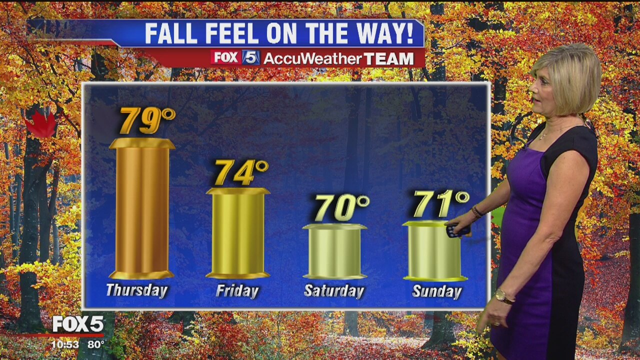 FOX 5's Sue Palka has more on the weather forecast that will feel a little more fall-like.