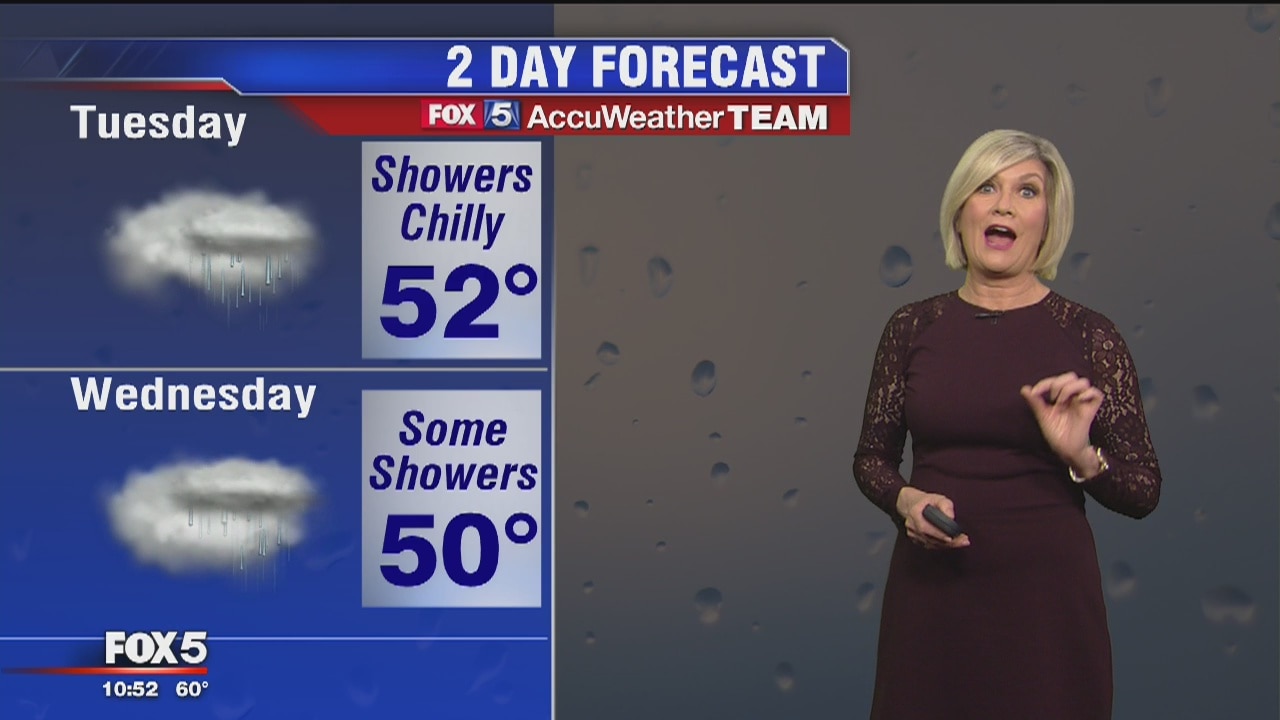 FOX 5's Sue Palka has the forecast for the rest of the week. A few showers around tonight. Chilly steady rain, falling temps Tuesday.