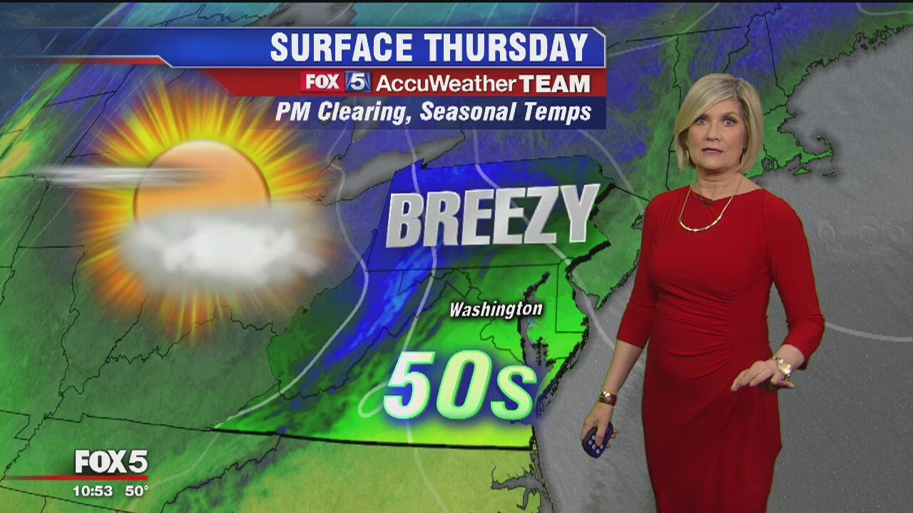 FOX 5's Sue Palka has the latest on the weather forecast for Thursday in the D.C. region.