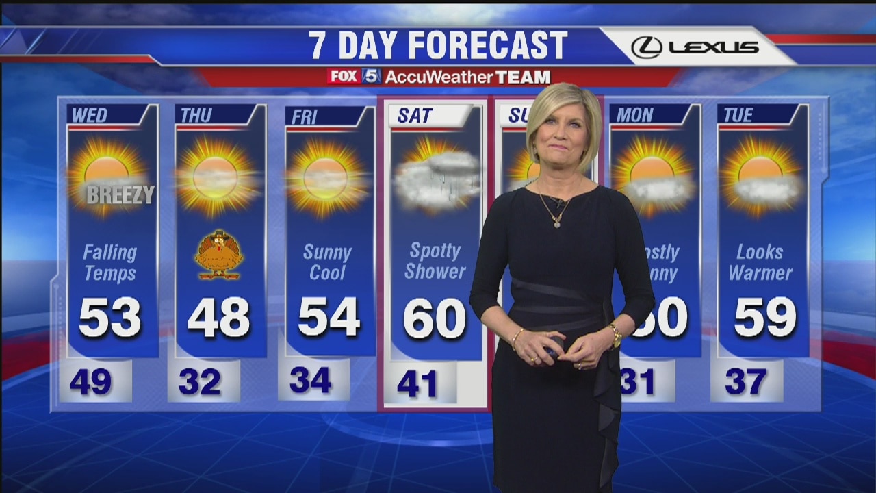 With Thanksgiving soon approaching, FOX 5's Sue Palka has the latest on the weather forecast for the rest of the week.
