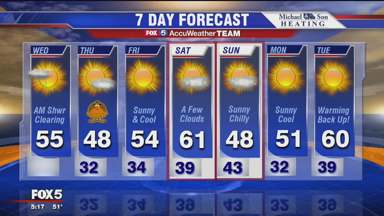 Mike Thomas has the FOX 5 Weather forecast for Wednesday, November 22