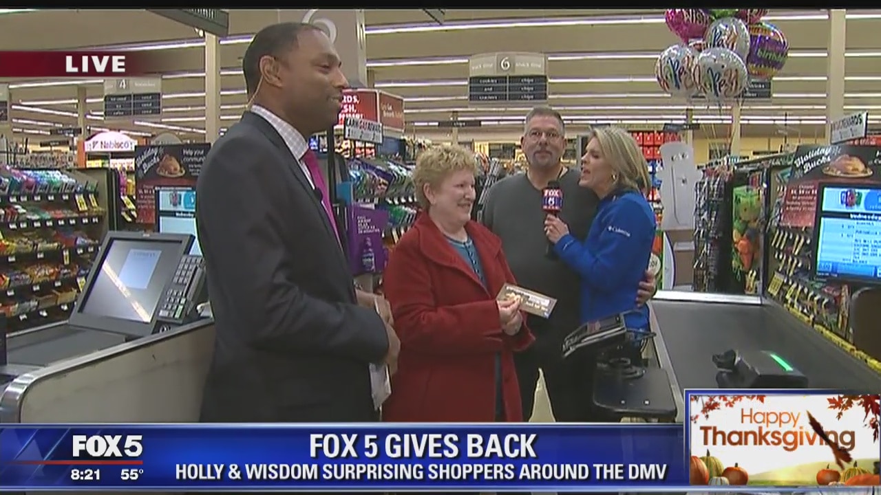 FOX 5?s Holly Morris and Wisdom Martin headed out early Wednesday morning to surprise four lucky shoppers with $200 American Express gift cards donated by Easterns Automotive Group.