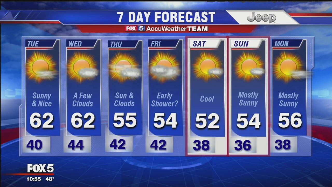 FOX 5's Gary McGrady has more on the mild Tuesday weather forecast.