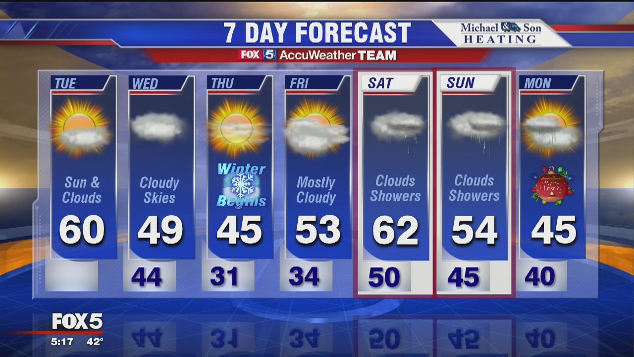 A high near 60? may make today the warmest day of the month! Winter officially begins on Thursday and cooler temps will head our way. FULL FORECAST on the FOX 5 App.