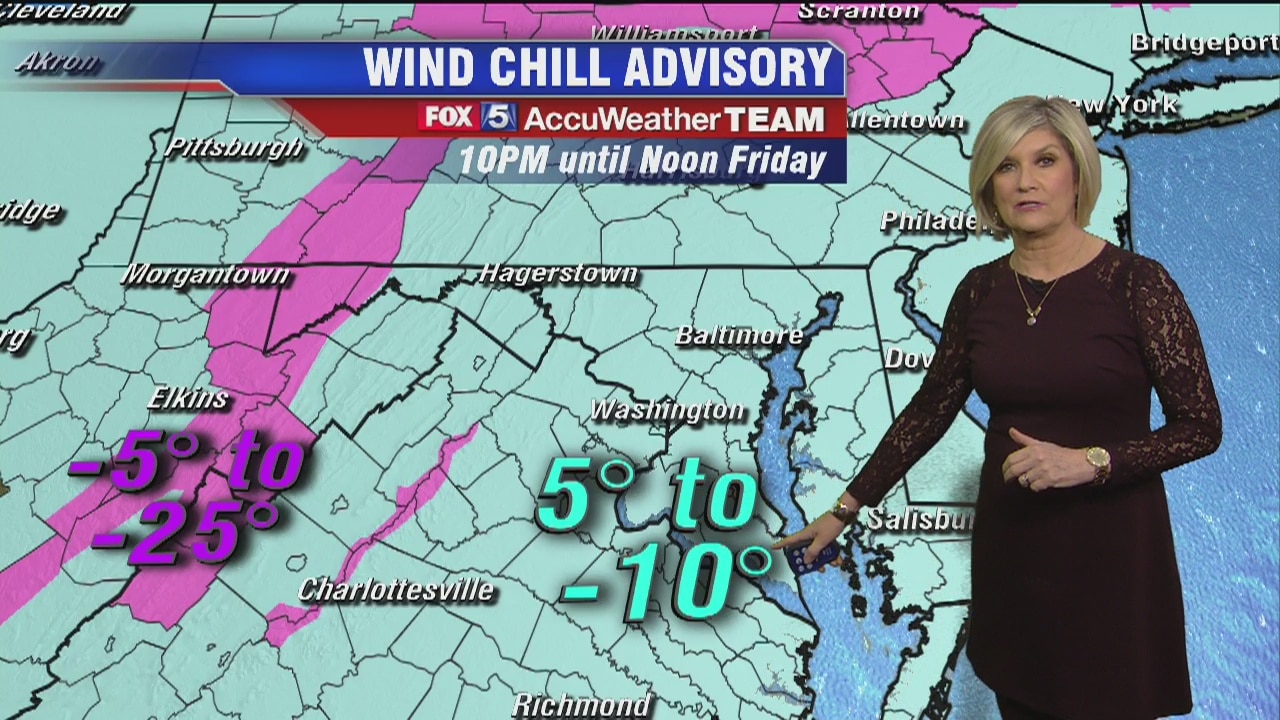 FOX 5's Sue Palka has the latest snow totals and a warning about the extreme cold temperatures and wind chill we are expecting tonight.