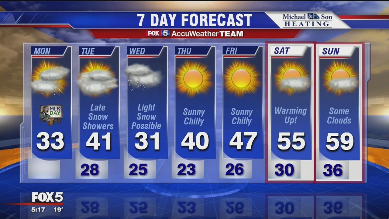 Mike Thomas has the FOX 5 Weather forecast for Monday, January 15.