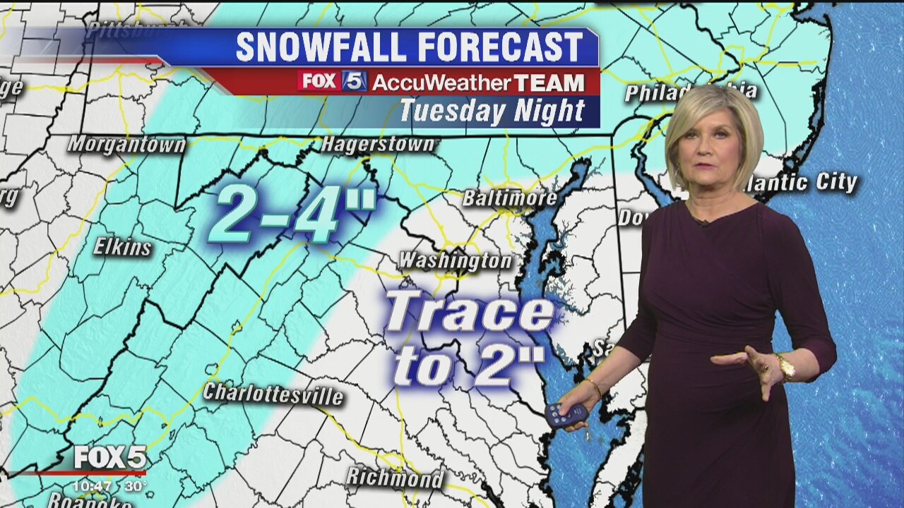 FOX 5's Sue Palka has more on the potential snow Tuesday night into Wednesday morning.