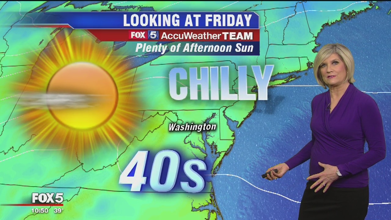 FOX 5's Sue Palka has more on Friday's weather forecast and the weekend warmup.