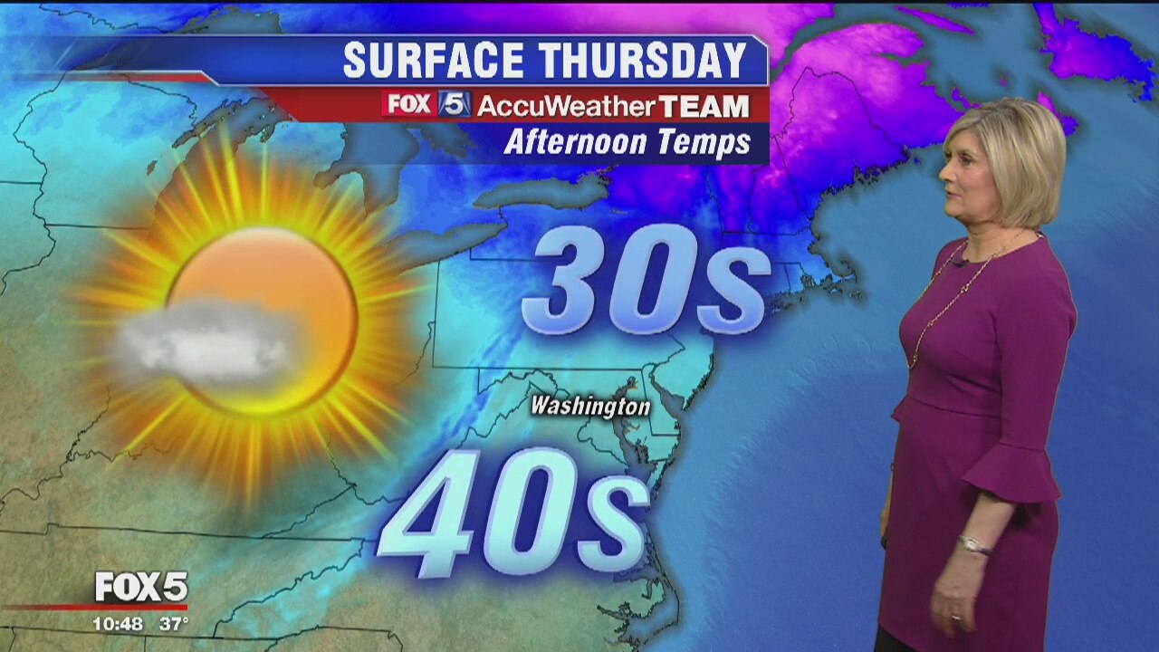 FOX 5's Sue Palka has more on Thursday's weather forecast and a warmup coming up during the weekend.