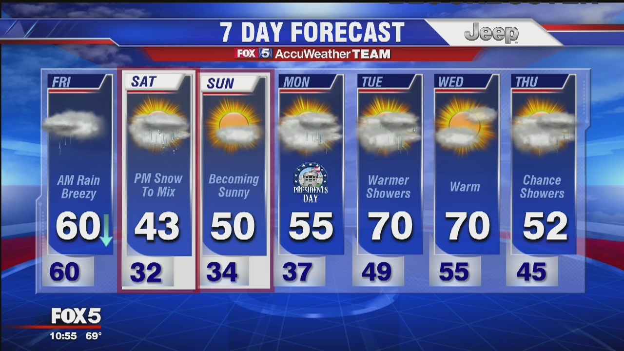FOX 5's Sue Palka has the latest on Friday's forecast and the winter weather expected this weekend.