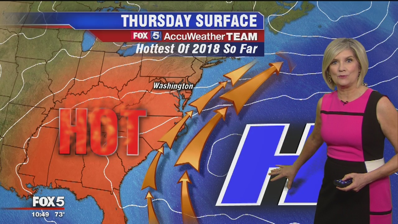 FOX 5's Sue Palka has more on the hot weather forecast for the next couple of days.